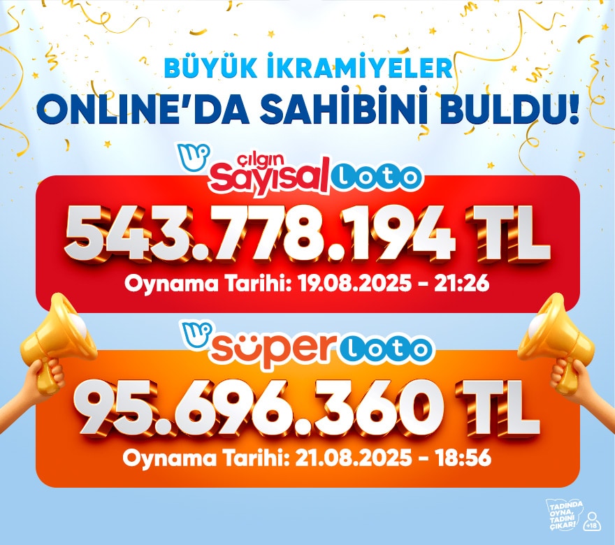 Canlı İzleÇılgın ikramiyeler, Çılgın Sayısal'da! Milli Piyango Mobil Uygulamasından ya da millipiyangoonline.com’dan hemen oyna, büyük ikramiyeleri kazanma şansı yakala!