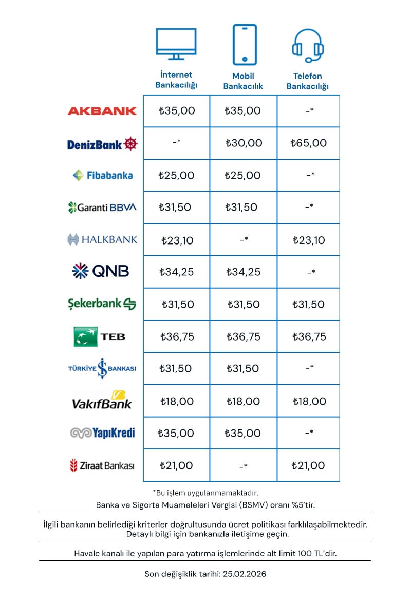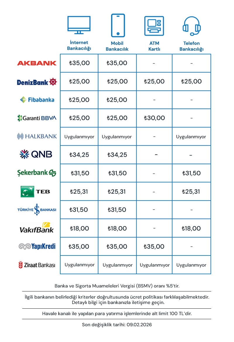 Banka Kanallarına Göre Para Yatırma Komisyon Bedelleri